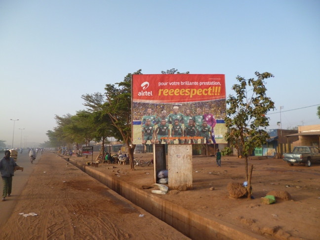 Fetischhuegel im alten Stadtviertel Kibidwe 12.02.2013 africa-cup: der traum ist zu endeEs gibt nicht viele Dinge, die man im Leben erlebt haben muss, doch einmal das Finale des Africa-Cups in einem der teilnehmenden Laender mitzelebriert zu haben, gehoert dazu. Ich hatte das Glueck am Finaltag mit dem Fahrrad nach Ouagadougou zu kommen. Schon am fruehen Nachmittag zogen rot-gruen gekleidete Fans feiernd durch die Stadt. Auf den Strassen jubelten sich Motorradfahrer, Autofahrer und Buspassagiere gegenseitig zu. Ich wurde auf meinem Fahrrad mitbejubelt und liess mich nach 90 Kilometern mit heftigem Gegenwind gerne feiern. Der geplante Zufall wollte es, dass ich mitten in einem africanischen Viertel abseits der vielen Auslaender in Waga landete. Dort nahmen mich ein paar Burkinabe mit zu einem grossen staubigen Platz, an dessen einem Ende eine kleine Grossbildleinwand aufgebaut war. Es war verdammt heiss, die Fans tanzten schon lange vor Spielbeginn auf den Stuehlen und drumherum. Was fuer eine Atmosphaere. Unter mehreren Tausend Fans war ich der einzige Nichtafricaner. Mehr Africa geht nicht. Es herrschte grenzenloser Optimismus, obwohl Burkina der grosse Aussenseiter war. Leider schoss Nigeria gegen Ende der ersten Halbzeit das 1:0, was doch auf's Gemuet schlug, insbesondere da Burkina gut mitspielte, aber sich keine grossen Chancen erarbeiten konnte. So endete der Traum nach neunzig Minuten. Gefeiert wurde trotzdem noch nach Spielschluss, als einige lokale Kuenstler sangen. Der Burkinabe laesst sich nicht so leicht die Laune verderben und sogar heute einen Tag spaeter sieht man noch feiernde Fans. 11.02.2013 ausnahmezustand: burkina faso im finaleDas Wunder ist Wirklichkeit geworden. Burkina Faso steht im Finale des Africa-Cups. Nachdem mit grossem Enthusiasmus dem Halbfinalspiel gegen Ghana entgegengefiebert worden war, begann das Spiel mit einer grossen Ernuechterung. Der Schiedsrichter gab nach einem vermeintlichen Foulspiel einen Elfmeter fuer Ghana. Diese krasse Fehlentscheidung bedeutete das 1:0 fuer Ghana, doch Burkina liess sich dadurch nicht entmutigen und hielt dem grossen Favoriten Ghana entgegen. In der zweiten Halbzeit gelang Bance vom FC Augsburg nach feiner Kombination der Ausgleich zum 1:1. Totale Ekstase! Die Burkinabe sind wild umhergeflippt. 1:1 stand es auch nach 90 Minuten, so dass es Verlaengerung gab. Die zweite fuer BUrkina Faso innerhalb von wenigen Tagen. In der ersten Halbzeit passierte nicht viel, ausser dass einer der Zuschauenden immer wieder darauf hinwies, wie muede die Spieler seien. Dass hoerten diese nicht und drehten in der zweiten Halbzeit der Verlaengerung total auf. Ghana mit einem Tag mehr Pause und ohne Verlaengerung in den Knochen wurde an die Wand gespielt. Nur mit einer spektakulaeren Abwehrreaktion eines Verteidigers konnte Ghana den Siegtreffer durch Bance verhindern. Das Elfmeterschiessen folgte. Gleich der erste Spieler Ghanas verschoss so klaeglich, dass er den Schiedsrichter fragte, ob er nicht noch mal schiessen koenne. Doch das war selbst beim Africa-Cup nicht drin. Nachdem bei beiden Mannschaften noch je ein Spieler verschossen hatte, hielt Burkina Fasos Torhueter den letzten. Grenzloser JUbel, die Burkinabe waren nicht mehr zu halten und tanzten wild umher. Ausnahmezustand in Boromo und im Rest des Landes. Mangels Autos entfiel zwar der Autokorso, doch dafuer tanzten die Menschen auf der Strasse und Motorraeder fegten furios durch die Menge, was nicht ungefaehrlich war. Doch es galt den groessten Erfolg in der Fussballgeschichte Burkina Fasos zu feiern. 08.02.2013 geeleriewe auf dem wuzzepassDie Strecke von Banfora nach Bobo Dioulasso schien eine ereignislose Radetappe mit leicht huegeligem Terrain zu werden. Ich lobte den anstaendigen Asphalt und verfluchte den heftigen Gegenwind. Da erblickte ich am spaeten Vormittag am Ende eines sanften Anstiegs mitten auf meiner Fahrspur ein Schild "Halte Douane", was mir gleich nicht koscher vorkam, denn was konnte der Zoll so mitten im Nirgendwo wollen. Wie sich herausstellte diente das Schild allein dazu, ahnungslose Reisende anzuhalten. Zwei Minibusse vollbesetzt mit Passagieren waren schon in die Falle geraten und als ich selbst die Passhoehe des Wuzzepasses erreicht hatte, war ich sofort mitten im Geschehe. Kecke Burkinabe-Maedels umringten mich und boten Geeleriewen feil. Kaum zu glauben. Mitten in Africa wurden auf dem Wuzzepass Geeleriewe verkauft. Fuer NichtHessen: Wuzzepass= Schweinepass und Geeleriewe= Karotten. Um alle Feinheiten der Bedeutung dieses Ereignisses begreifen zu koennen, muss man jedoch ein profunder Kenner des Grossraumes Altenhain-Neuenhain sein. Ich erwarb drei der koestlich schmeckenden Karotten, ehe ich mich auf der anderen Seite bergab kaempfte. Der Gegenwind war staerker als das Gefaelle.