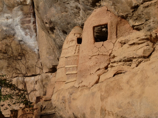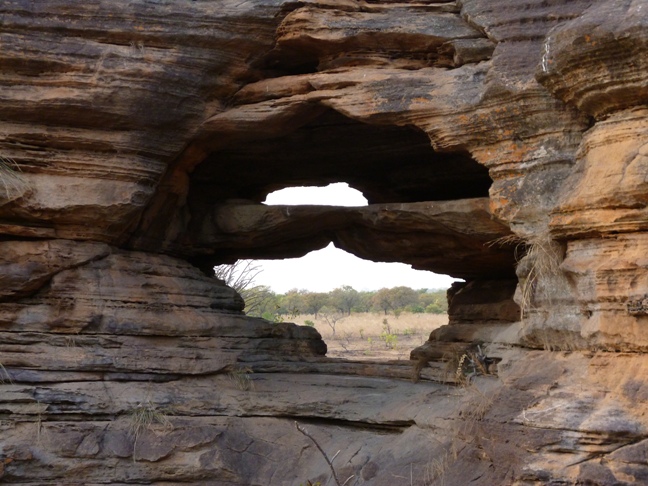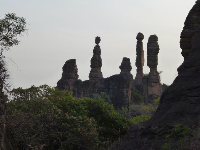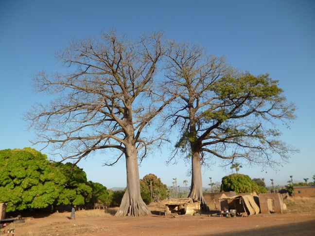 Fromager Baeume in der Trockenzeit ziemlich blattlos 04.02.2013 africa-cup aktuell: burkina faso im halbfinaleDas traditionelle Verlierer-Team von Burkina Faso hat beim Africa-Cup das Halbfinale erreicht. Nachdem im ersten Spiel der Vorrunde mit Glueck gegen das starke Nigeria durch ein Tor des kurz zuvor eingewechselten Wunderstuermers Alain Traore in der vierten Minute der Nachspielzeit der Ausgleich zum 1:1 gelang, drehte Burkina im zweiten Spiel gegen Aethiopien, in dem Traore von Anfang an mitwirkte, richtig auf und fertigte den Gegner mit 4:0 ab. Die ersten zwei entscheidenden Tore schoss natuerlich Traore, doch noch bemerkenswerter ist, dass Burkina ab dem 1:0 mit einem Mann weniger spielen musste und drei Tore in Unterzahl schoss. Wann ist das je einem Team gelungen? Beim Stande von 1:0 war der Torhueter Burkinas nach einem Handspiel ausserhalb des Strafraumes, wobei dies eine enge und strittige Entscheidung war, vom Platz gestellt worden. Am gleichen Tag ist der Vater des Torhueters bei einem Verkehrsunfall in Burkina Faso ums Leben gekommen. Solch eine Tragik ist nur in Africa moeglich. Im letzten Gruppenspiel, in dem sich Traore nach wenigen Minuten verletzte, gelang nach zaehem Kampf gegen Titelverteidiger Sambia ein 0:0, was zum Gruppensieg reichte. Von den acht Teams im Viertelfinale stammen sieben aus Westafrika, allein Gastgeber Suedafrika ist eine Ausnahme und scheitert aber dort im Elfmeterschiessen an Mali. Burkina Faso spielt gegen Togo mit Starstuermer Adebayor, waehrend Traore weiterhin verletzt fehlt. Da in Burkina Faso weniger als ein Prozent der Haushalte einen Fernseher besitzen, ist public viewing schon immer eine wichtige Institution gewesen. Ich sehe mir das Spiel auf dem grossen Platz vor dem Bahnhof in Bobo Dioulasso auf einer kleinen Grossbildleinwand an. Die Erwartungshaltung ist riesig, jeder Ball, der irgendwie Richtung Strafraum von Togo fliegt, wird frenetisch bejubelt. Das ausgeglichene Spiel ist ein heisser Kampf und geht mangels Toren in die Verlaengerung. Auch dort bleibt die erste Halbzeit torlos. In der zweiten Halbzeit erhaelt Burkina Faso einen Eckball und noch im Moment, in dem der Spieler anlaeuft, erfolgt riesiger Jubel und die Menschen liegen sich in den Armen. Alles africanische Intuition. Wenige Sekunden spaeter fliegt der Ball Richtung Tor und Jonathan Pitroipa, auch aus der Bundeslige bekannt aber nicht als Kopfballspezialist, koepft zum entscheidenden 1:0 ins Tor. Der krasse Aussenseiter Burkina Faso steht damit im Halbfinale des Africa-Cups, wo der naechste Gegnger Ghana heisst. 04.02.2013 am ende der weltNoch ist nicht einmal die Haelfte meiner Reise vorueber, obwohl es sich anfuehlt, als sei ich schon ueber ein Jahr auf dem Fahrrad in Africa unterwegs, und schon gelangte ich ans Ende der Welt. Zum Glueck hatte ich die Haelfte meines Gepaeckes in Banfora gelassen, denn die Staubpiste nach Sindou war die schlechteste Piste mit Ausnahme jener nicht fahrbaren Bergstrecke in Guinea. Wellblech und Sandbunker wechselten sich ab, waehrend zu viele Autos und Lkws mich immer wieder in Staubwolken huellten. Die Mehrheit der Motorradfahrer trug eine Mund- und Naseschutzmaske wie im OP. Die geniale Landschaft in Sindou entschaedigte fuer alle Strapazen. Von dem schon sehr entlegenen Ort radelte ich noch eine Tagesetappe weiter bis in den winzigen Weiler Niansogoni. Die Staubpiste dorthin war nur marginal weniger schlecht, doch diese Etappe bereitete mir grosses Vergnuegen. Fast die gesamte Strecke war eine Allee mit riesigen schattenspendenden Baeumen und mir begegneten nicht mehr als zwei Minibusse auf der Fahrt. Dass in Niansogoni im aeussersten Suedwesten von Burkina Faso an der Grenze zu Mali und der Cote d'Ivor die Zeit vor fast Einhundert Jahren stehen geblieben ist, erschien mir nur logisch. Mit meinem modernen Fahrrad wirkte ich an diesem archaischen Ort mit Lehmhuetten, konischen Getreidespeichern und verlassenen Hoehlendoerfern deplatziert.
