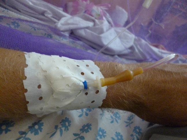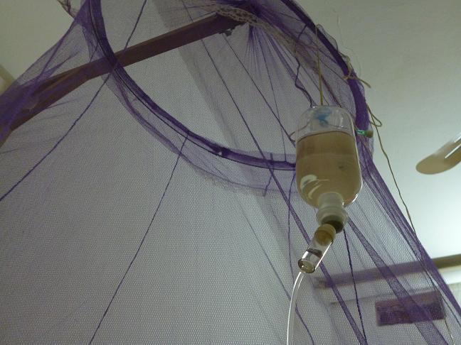 Braunuele legte und mich an die Infusion (Tonic Water), die er an die Aufhaengung des Moskitonetzes