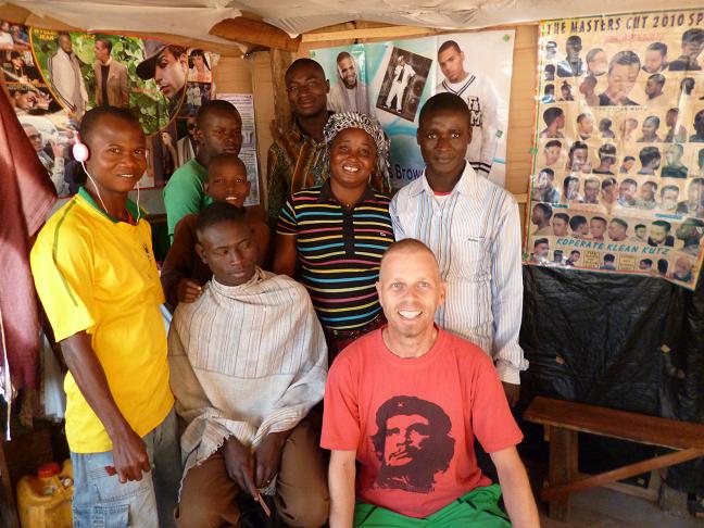 Blick ueber den Niger in der Trockenzeit 14.01.2013 kahlschlagIn Kankan, die mit Abstand groesste Stadt Guineas, die ich auf meinem Weg durchs Land ansteuere, lande ich bei der Biertrinkerunion (offiziell Centre d'Accueil Diocesain). Direkt nachdem ich die heiligen Mauern passiert habe, kommt mir der erste Mann mit einer Bierflasche entgegen, und das kurz nach Mittag. Noch nie habe ich irgendjemand auf meiner Reise ausserhalb eines Restaurants mit einem Bier gesehen. Nachdem ich einen schmalen Gang zwischen einer hohen Mauer und einem Gebaeude passiert habe und nach links abgebogen bin, stehe ich in einem Innenhof, dessen Szenerie Bierflaschen praegen, waehrend sich leere Bierdosen allerorten stapeln. Hosiana! Ein perfekter Biergarten, auch wenn der mittig spriessende Baum keine Kastanie ist. Im hinteren rechten Eck befindet sich die Rezeption der Herberge und auch dort mangelt es nicht an Bier. Bemerkenswert ist die ausgekluegelte Architektur der Anlage. Von drei Seiten umschliesst das Gebaeude den Innenhof, waehrend an der vierten Seite ein nicht all zu breiter Durchgang verbleibt. Dieser ist durch eine hohe Mauer und riesige Mangobaeume abgeschirmt, die jeden Einblick verwehren. Der mittig im Innenhof gepflanzte Baum bietet Schutz nach oben, so dass Allah nicht zuschauen kann. Entsprechend beliebt ist der Ort bei bierliebenden Moslems. Verraeterische Schilder oder Wegweiser existieren nicht, so dass Allah keine Chance hat, diesen Ort jemals zu entdecken, waehrend Gott beide Augen zudrueckt. Ich habe dringend einen Haarschnitt vonnoeten, so dass es sich gut trifft, dass direkt gegenueber meiner Unterkunft ein Friseursalon seine Dienste anbietet. Das im Laden haengende FC Barcelona Poster ist mehr als ein Qualitaetssiegel, es muss sich um ein Fachgeschaeft mit exzellenten Friseuren handeln. Nachdem ich den Preis erfragt und falsch verstanden habe (statt 7000 GF kostet ein Schnitt nur 5000 GF, was etwa 50 Cent entspricht), bekomme ich einen Umhang und um den Hals ein Tuch umgelegt. So weit, so gut. Doch nun verlaesst der Mann bekanntes Terrain und nimmt eine holprige Offroad- Strecke. Statt sich nach meinen Frisurwuenschen zu erkundigen, legt er einfach los. Ich haette es besser wissen muessen. So wie die selten vorhandenen Restaurants - gibt es nur in Verbindung mit einem besseren Hotel - immer genau ein Gericht (Huehnchen mit Pommes) im Angbeot haben; so hat der Friseur selbstverstaendlich nur einen Haarschnitt im Repertoir. Ich haette nur mal die Augen aufmachen muessen, wenn ich so durch die Strassen laufe. Mit einer klassischen Papierschere schlaegt er wild Schneisen in meinen Dschungel. Nicht einmal meine Neffen duerften im Kindergarten in der Bastelstunde so unkontrolliert zu Werke gehen. Es wird radikal gekuerzt, so dass ich vorsichtig darauf hinweise, die Haare oben etwas laenger zu lassen. Wie sich herausstellen wird, erfolgt der Schnitt in drei Phasen. Mit der Schere wird nur die grobe Vorarbeit verrichtet, danach packt der Friseur eine originalverpackte klassische Rasierklinge aus und zusammen mit einem Kamm wird das bereits sehr kurze Haar weiter gestutzt. Fuer die letzte Phase erhalte ich eine neue originalverpackte Klinge, mit der der Mann nun Freihand zu Werke geht. Ich sehe mich schon im Friseursalon verblutend am Boden liegen und wage es weder den Kopf zu bewegen noch einen Mucks zu sagen, was der Mann dazu nutzt, meinen Haaransatz an der Stirn um einen Zentimeter nach hinten zu verlegen. Ausserdem bekomme ich ekstatische Zacken in die Schlaefen geeschnitzt, was jedoch kaum auffaellt bei blonden Haaren mit einem Millimeter Laenge. Als der Friseur sein Werk vollendet hat, ohne mir den kleinsten Kratzer zugefuegt zu haben, habe ich rundum am Kopf einen Millimeter Haarlaenge und oben drauf drei Millimeter. Er hat es dort laenger gelassen...