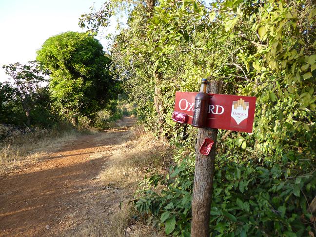 Zigarettenwerbung 05.01.2013 ein langer tag, der zur nacht wird - teil 217:15 Ich gruesse ein zahnlose Oma: "Jarama", sie gruesst zurueck "Jarama". Etwas abseits des Weges sind ein paar kleinere aermlich wirkende Huetten zu erkennen. 17:26 Zigarettenreklame? Zigarettenreklame! Was waere die Welt ohne Zigarettenreklame. Nun liegen oefters Doerfer am Weg, ich erkundige mich, dass ich noch richtig bin. 18:02 Die Strasse endet an einem Tor, dahinter liegt ein Dorf. Eine gated comunity? Was tun? Ein zufaellig vorbeikommender Mann gibt mir eine Erklaerung, die ich nicht verstehe, und oeffnet das Tor fuer mich. Ausserdem weiss er, dass ich auf dem weiteren Weg einen Fluss queren und einen Abzweig nach links nehmen muss. 18:24 Ich kann letztmalig am Tacho ablesen, noch etwa vier Kilometer nach Mali. Es wird dunkel, richtig dunkel. Eine allesverzehrende Schwaerze, nicht einmal der Mond scheint. Ein grandioser Sternenhimmel, den ich ignoriere, bedeckt das Firmament. Als ich ein kleines Waldstueck schiebend durchquere, vernehme ich verdaechtiges Rascheln links hinter mir. Ich drehe mich um, ein schwarzer Schatten schleicht auf den Weg. Eine verdammt grosse Miezekatze. Eine zu grosse Katze. Gruene Augen blitzen mich aus der Dunkelheit an. Deren Funkeln ist mir nicht geheuer und die Katze scheint immer groesser zu werden. Ich stosse einen furchterregenden Schrei aus und klatsche mit der flachen Hand auf den Sattel. Was immer es ist, es springt erschreckt zurueck in den Wald. Ich schiebe weiter nun noch wachsamer. Nirgendwo ein Lichtschein. Irgendwelche Lichter von Mali muesste ich doch laengst sehen koennen. Stattdessen wildes bergauf und bergab. Ich durchquere radelnd einen kleinen Bach, danach knirscht es gewaltig im Getriebe. Ich kann in der Dunkelheit nichts erkennen und klopfe gegen das Schutzblech. Schotter rieselt hinab, doch das unschoene Knirschen verschwindet fortan nicht mehr. Ein Blick auf meinem Tacho mittels Stirnlampe zeigt mir, dass ich seit jenem Dorf schon mehr als acht Kilometer zureuckgelegt habe. Und weiterhin nichts als Finsternis und Geroell. Mittlerweile fehlt mir die Kraft zum Fluchen. Jeden, der daherkommt, frage ich nach Mali. Immer nur weiter dem Weg folgen. "C'est loin?" "Pas loin" "Mais c'est loin" Irgendwann meint einer, es seien noch zwei Kilometer. Doch angesichts von Geroell und Felsen habe ich das Radeln schon laenger aufgegeben. Ich habe Muehe, noch eine Strasse zu erkennen. Diese scheint immer breiter zu werden, 50 Meter, 100 Meter, ein gewaltiges Geroellfeld. Eine Mondlandschaft doch dieser selbst hat sich versteckt. Bin ich noch richtig? Einzig die mir entgegenfunzelnden Taschenlampen bieten noch Orientierung. Doch wo ist der helle Schein von Mali? Endlos rumpele ich ueber das Geroell. Mir fehlt einfach die Alternative. Da, eine Lichterkette schon fast nah. Unbemerkt habe ich eine KUppe passiert und sehe nun die ersten Lichter meines Ziels. So endet der mit Abstand haerteste Tag meiner Reise.