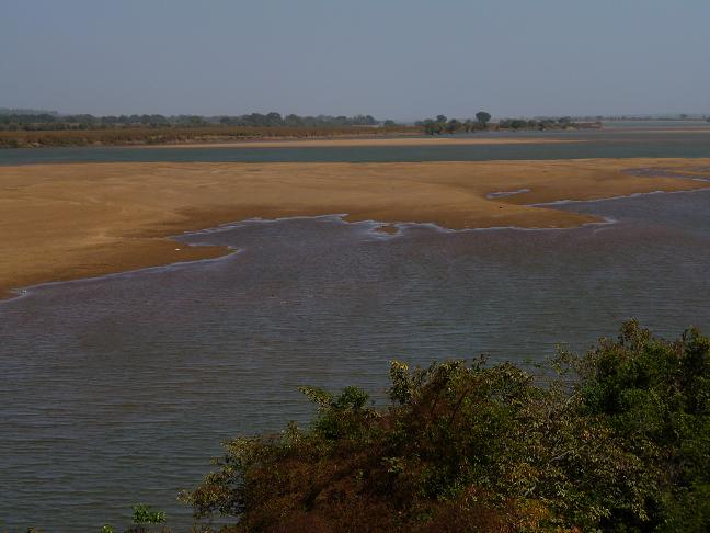 Natuerliche in den Mandingues-Bergen 20.01.2013 Africa-Cup vom 19.01. - 10.02. 2013 in SüdafricaZuschauen. Mitfiebern. Abfeiern.marktagVon Kankan aus wage ich mich an eine Koenigsetappe. Nach meiner Karte sind es 133 Kilometer bis Sigiuri, doch das Terrain verspricht sehr flach zu sein, die Strasse ist tadellos asphaltiert und verlaeuft teilweise am Niger entlang. Um 6:40 sitze ich bei kuehlen 12 Grad im Sattel und als ich den Grossraum Kankan verlassen habe, sinkt das Thermometer am Fahrrad auf 7 Grad, obwohl mir mein lonely-planet-Reisefuehrer versprochen hatte, dass es nicht mehr kalt wird. Da hilft nur kraeftig Strampeln. Die ersten 90 Kilometer rolle ich locker in weniger alsfuenf Stunden dahin, doch kurz bevor ich den Niger erreiche, verschwindet die Strasse, immerhin der internationale Highway nach Bamako, der Hauptstadt Malis, auf einmal. Ich bin in einem Pulk von Menschen und muss vom Rad steigen. Was ist passiert? Nichts. In einem kleinen Dorf an der Strasse ist Markttag und dieser vereinamt die komplette Hauptstrasse. Wuetend hupende Motorraeder stecken genauso fest wie ich. Ein ratloser Autofahrer hat schon aufgegeben und parkt mitten in der Menschenmenge oder mitten auf der Strasse je nach Sichtweise. Nur langsam kaempfe ich mich ueber den Marktplatz. Danach erreiche ich den Niger. Eine lange Bruecke quer diesen riesigen Fluss. Der zuvor schon stramme Wind fegt fast in Sturmstaerke ueber die Bruecke, so dass ich vorsichtshalber meinen Tropenhelm abnehme. Danach aendert die Strasse ihre Richtung und fuer die letzten 40 Kilometer habe ich teils strammen Gegenwind und dazu herrscht ein Verkehr wie ich ihn in Africa noch nicht erlebt habe. Viele Lkws und pausenlos knattern Motorraeder vorbei. Kein Vergnuegen mit bereits 90 Kilometern in den Beinen. Ziemlich geplaettet erreiche ich das weitlaeufige Siguiri.