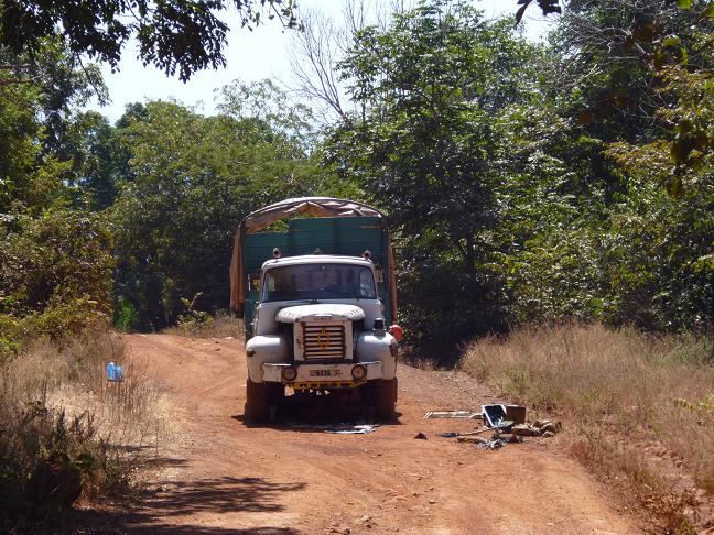 zwei Lkws, die mindestens eine halbe Stunde vor mir in Cissela vorbeigefahren sein muessen,
