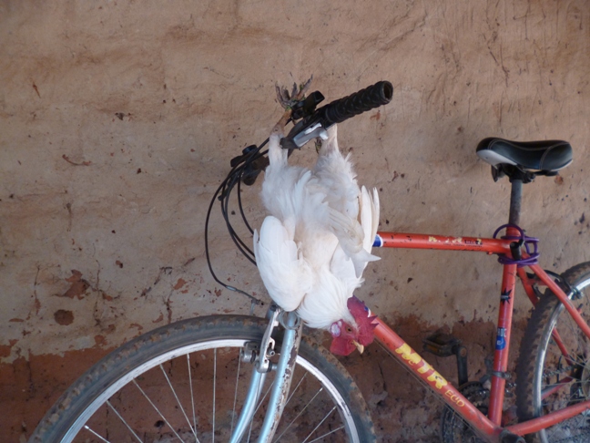 als wir schon wieder auf dem Motorrad sassen, praesentierte sie ihm in einer verzweifelten