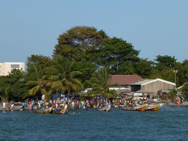 Blick vom Gambia-Fluss auf Banjul