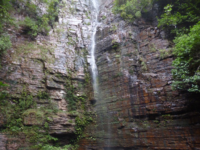 Vermeintlicher Wasserfall in Dindefelo erweist sich als ein es tropft ein bisschen den Felsen herunter 30.12.2012 achtung schlafende löwen