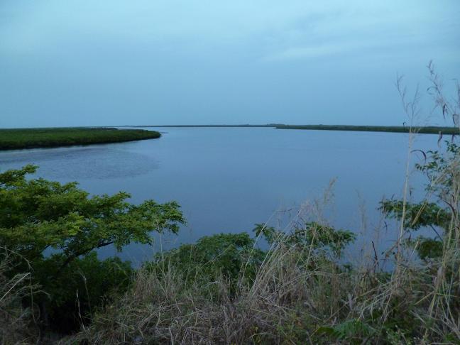 ...Yo no soy marinero... 04.12.2012 bei der polizeiVon nun an radelte ich am noerdlichen Ufer entlang des Gambia-Flusses,
