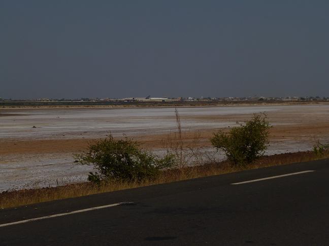 Art Salzsee auf und am Horizont flimmerte Kaolack mein Ziel.